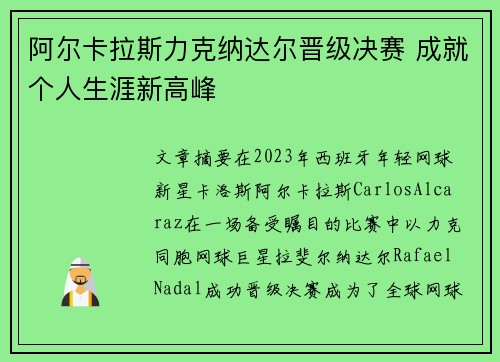 文章摘要:在2023年,西班牙年轻网球新星卡洛斯·阿尔卡拉斯(Carlos Alcaraz)在一场备受瞩目的比赛中,以力克同胞、网球巨星拉斐尔·纳达尔(Rafael Nadal)成功晋级决赛,成为了全...