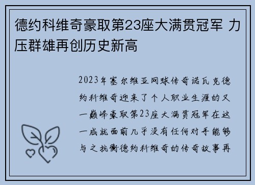• 德约科维奇豪取第23座大满贯冠军 力压群雄再创历史新高