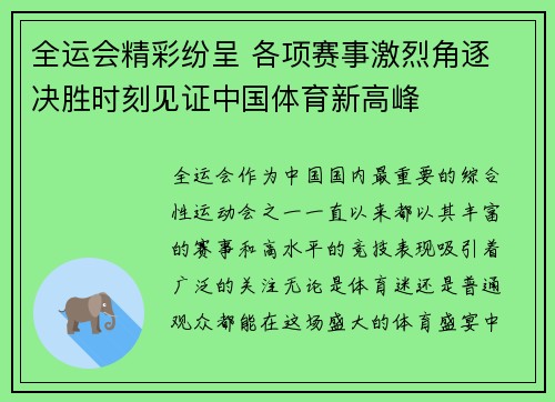 • 全运会精彩纷呈 各项赛事激烈角逐 决胜时刻见证中国体育新高峰