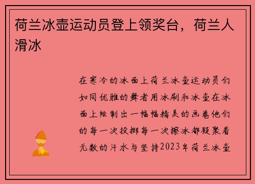 • 荷兰冰壶运动员登上领奖台,荷兰人滑冰