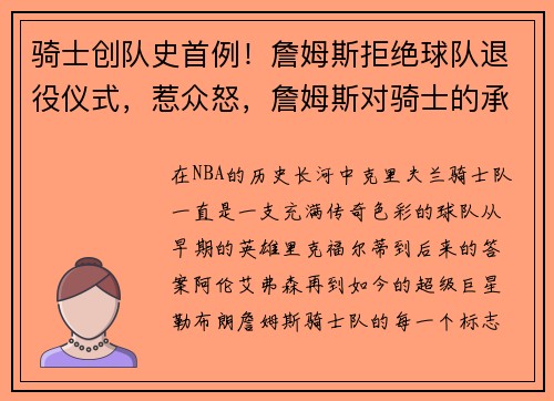 • 骑士创队史首例!詹姆斯拒绝球队退役仪式,惹众怒,詹姆斯对骑士的承诺