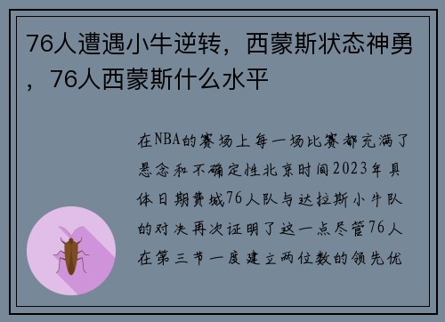 • 76人遭遇小牛逆转,西蒙斯状态神勇,76人西蒙斯什么水平